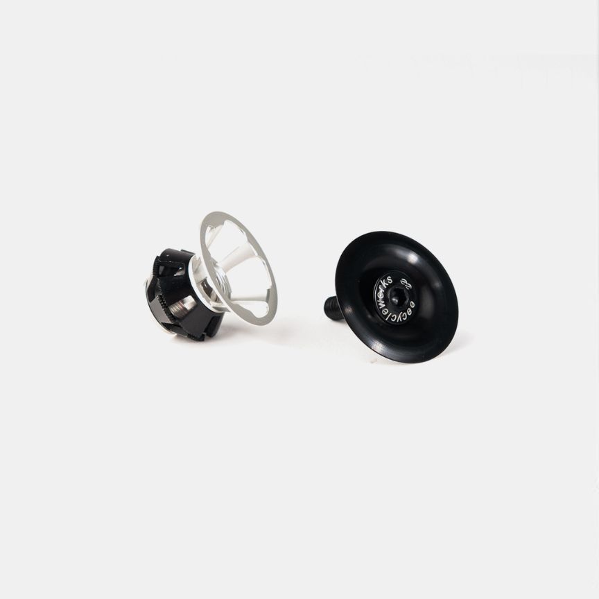 The eeTop and eeNut offer a beautifully functional new concept for an extremely lightweight preload assembly. A total weight of only 9.6 grams for the full assembly, the eeTop and eeNut saves 30 grams over the typical top and preload. The eeNut is a unique and patent pending design providing ultra light weight, solid locking action and ease of installation in one package. The recessed cone shape provides greater tension stiffness. This increased stiffness facilitates precise headset adjustment and sets it apart from other lightweight caps.