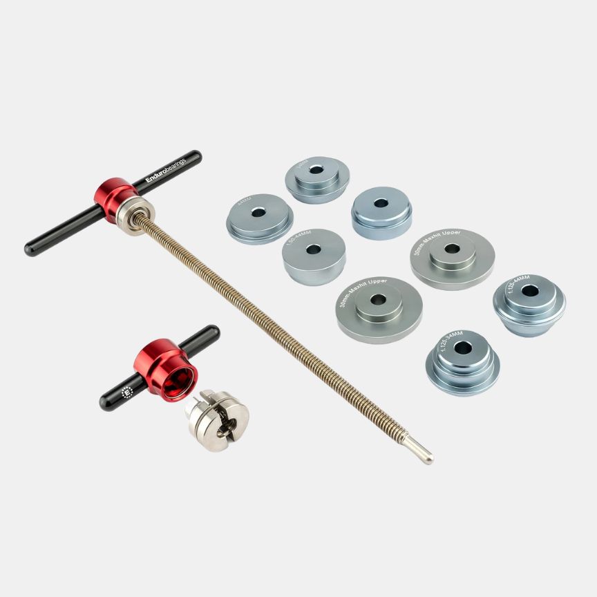 This kit includes 3/8 inch (10mm) Acme thread press rod sized for headset installation, a pair of interchangeable Liner Quick Handles, a quick-action 3/8 Zipnut, and a full complement of guides to ensure efficient and accurate headset installation.